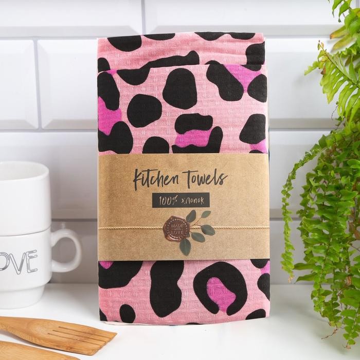 Набор кух.полотенец Доляна Leopard 40х73см-2шт., 100% хл, вафля, 160 гр/м2