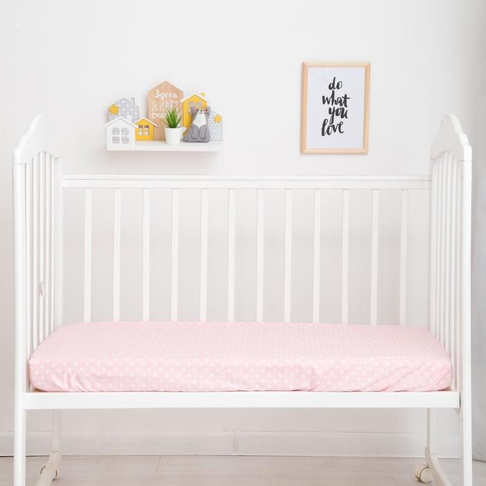 Простыня на резинке «LoveLife» Розовые звездочки 60*120+20 см, 100% хлопок, сатин