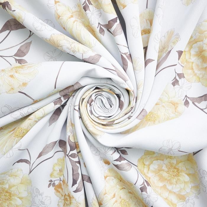 Штора портьерная блэкаут Японский пион 135×260 см, жёлтый, пэ 100%