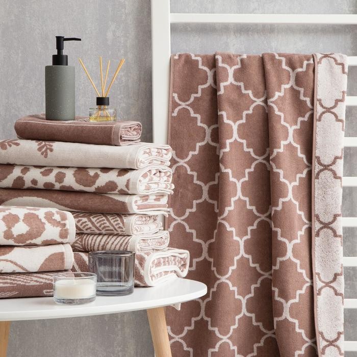 Полотенце махровое Этель Ornament беж, 70×130 см, 100% хл, велюр, 420 гр/м2