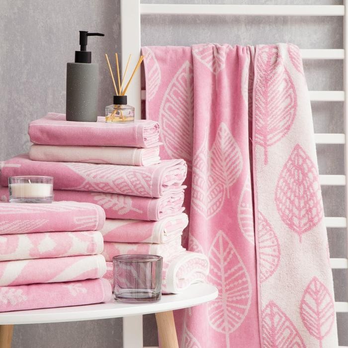 Полотенце махровое Этель Foliage розовый, 70×130 см, 100% хл, велюр, 420 гр/м2