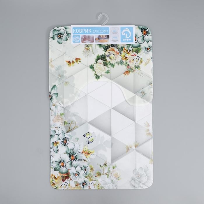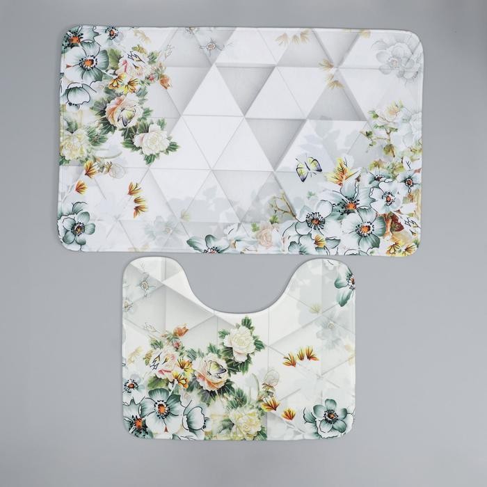 Набор ковриков для ванны и туалета Доляна «Геометрия цветов», 2 шт: 50×80, 40×50 см