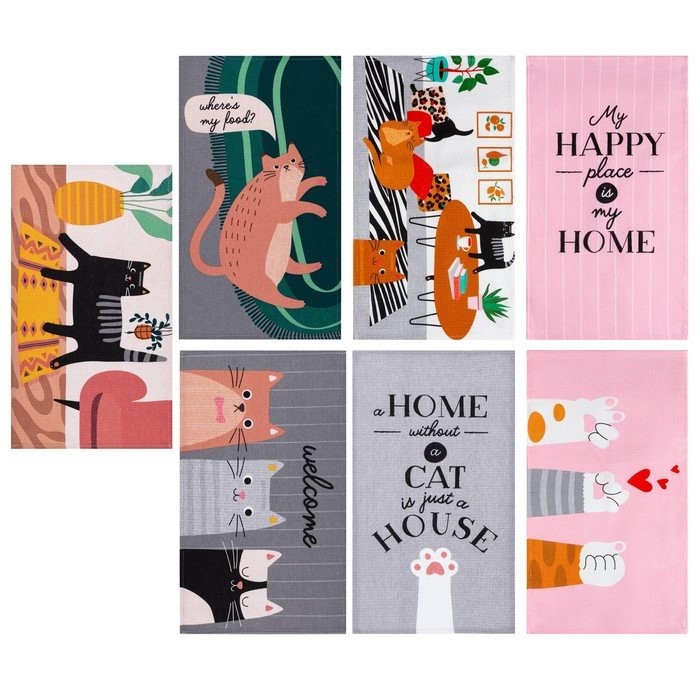 Набор кухонных полотенец Доляна Сats 35х60см-7шт, 100% хл
