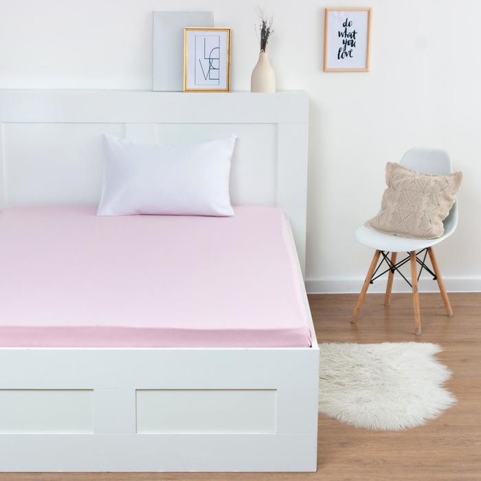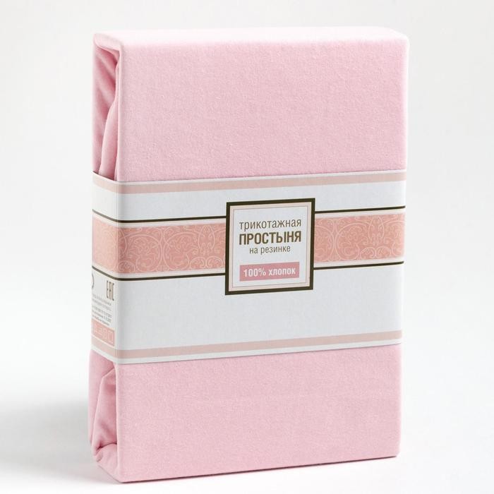 Трикотажная простынь на резинке 160х200х25см, розовый кулирка
