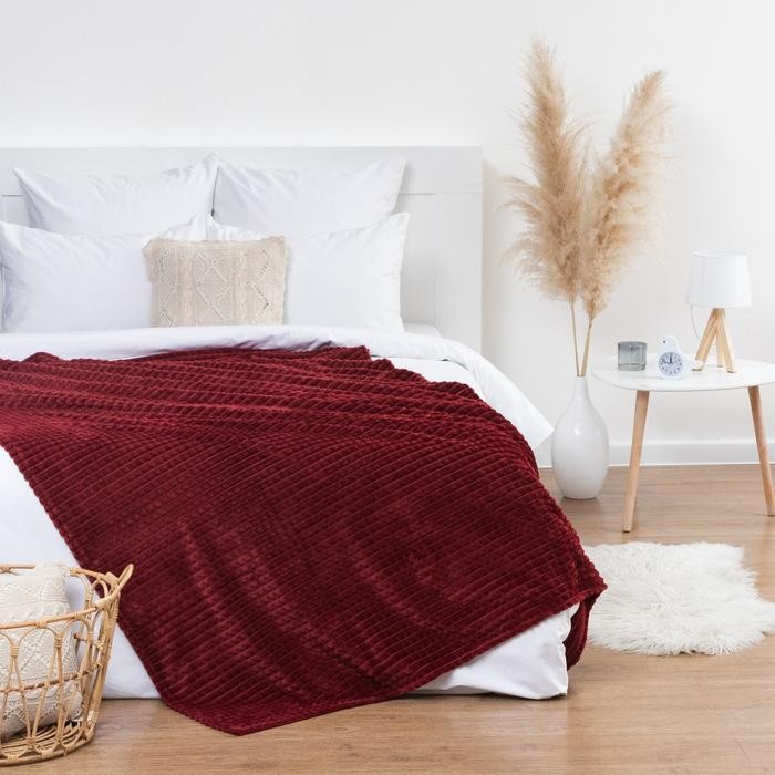 Плед Этель «Клетка» 180*200 см, цв.красный, корал-флис, 240гр/м2, 100% полиэстер
