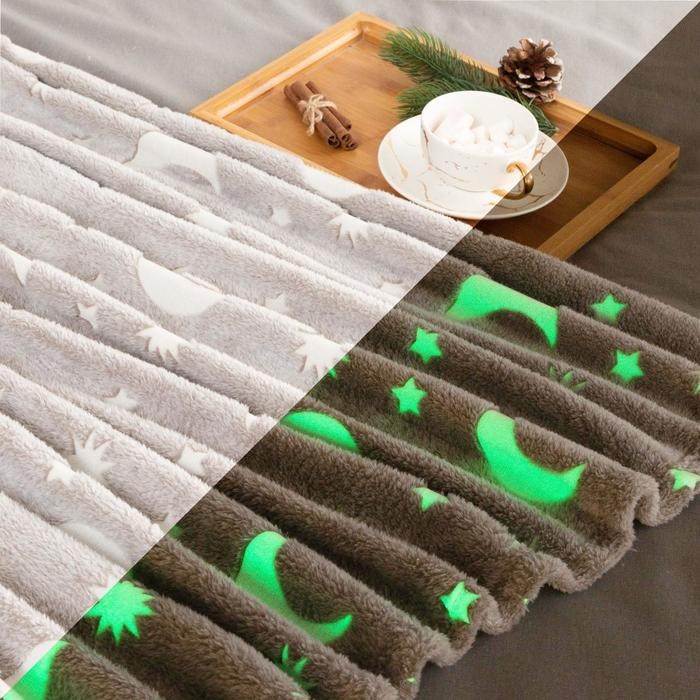Яркость и продолжительность свечения пледа зависит от того, насколько долго он находится на свету. Даже после машинной стирки плед не потеряет свои свойства.