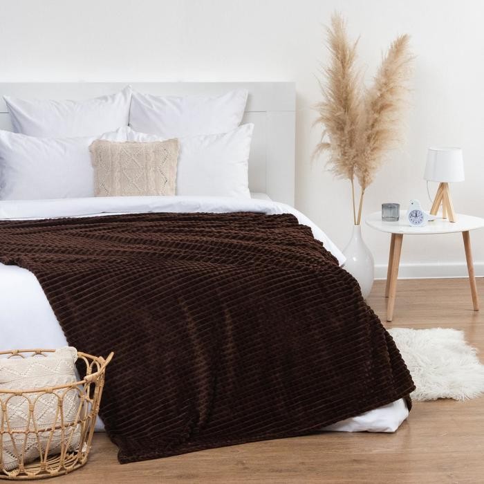 Плед Этель «Клетка» 180*200 см, цв.коричневый, корал-флис, 240гр/м2, 100% полиэстер