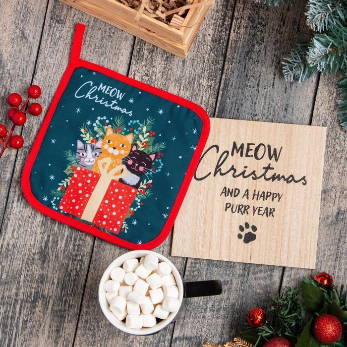 Новогодний набор кухонный Meow Christmas подставка, прихватка