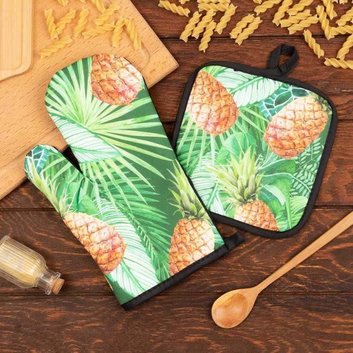 Кухонный набор Доляна «Ананасы» прихватка 17*17 см, варежка-прихватка 26*16 см, 100% п/э