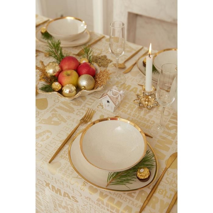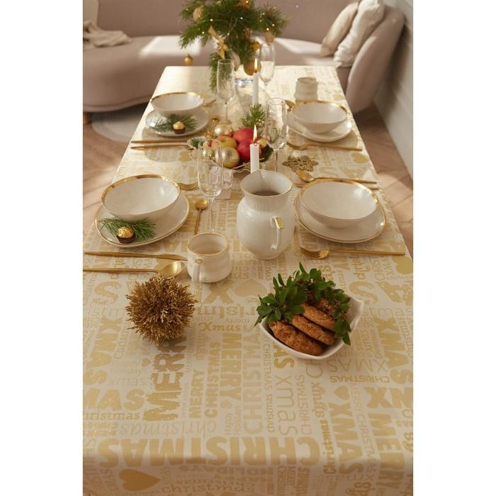 Скатерть Этель «Новый год: Merry xmas» цвет золотой, 142*220 +/-3 см, 115 ±10 гр, 100% п/э