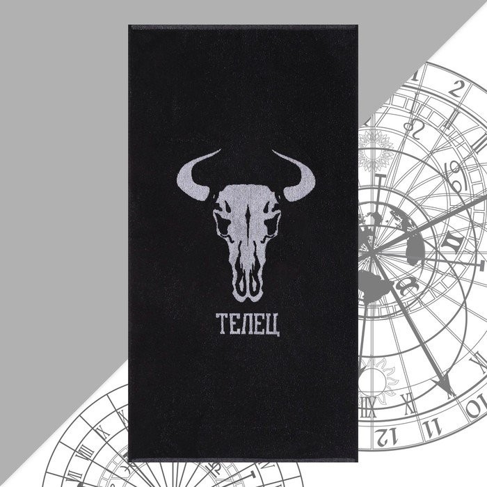 Полотенце махровое Этель «Знаки зодиака: Телец» чёрный, 67×130 см, 420 гр/м2, 100% хлопок