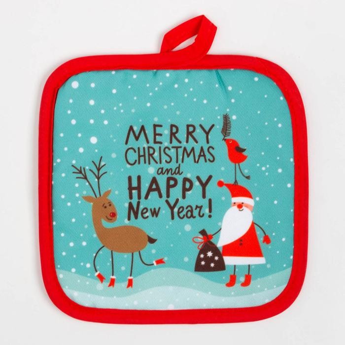 Кухонный новогодний набор Доляна «New Year», прихватка 17*17 см, варежка 26*16 см,100% п/э