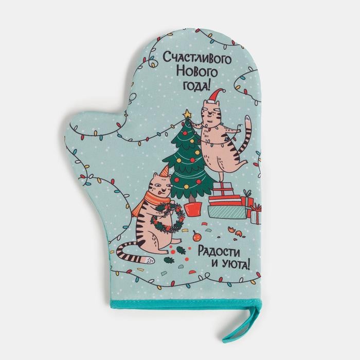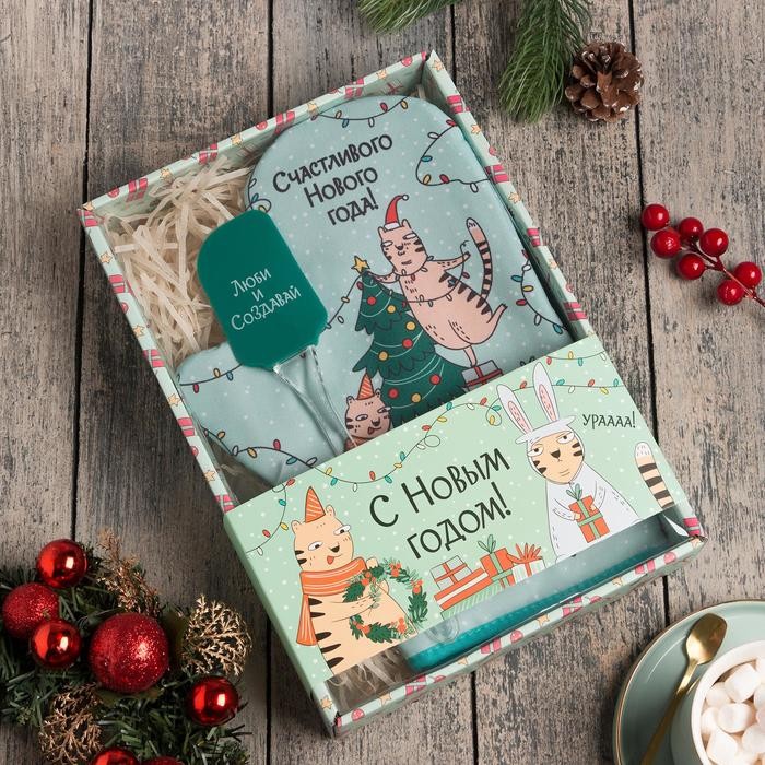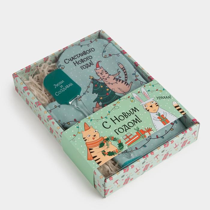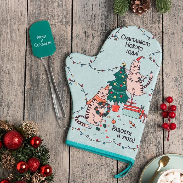 Новогодний набор подарочный «Радости и уюта» варежка-прихватка, лопатка силикон