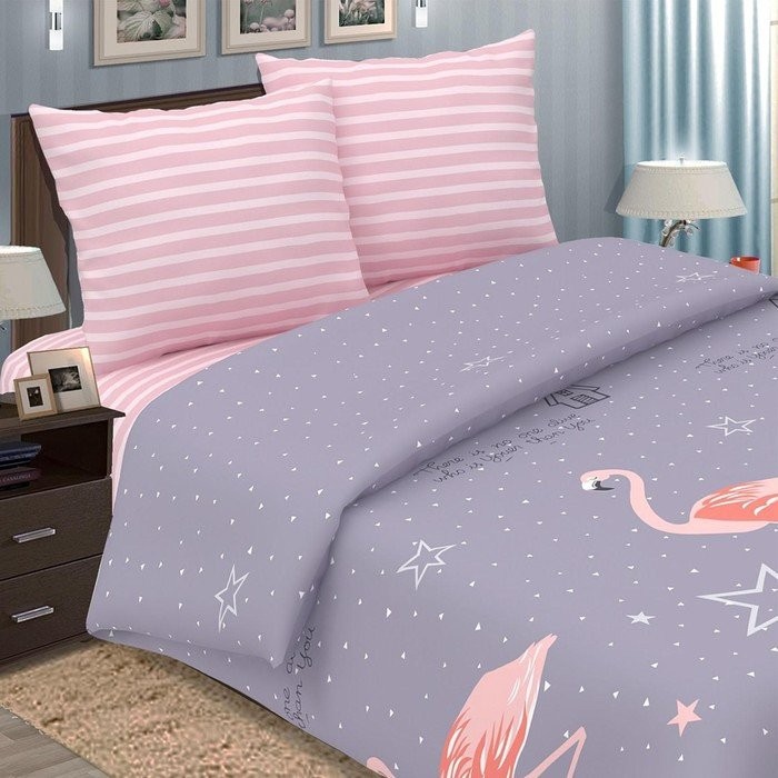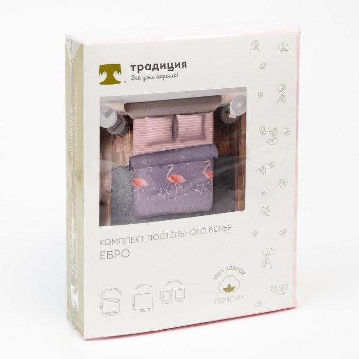 Постельное бельё «Традиция: Фламинго», 1.5 сп., 147×217, 150×220, 70×70 — 2 шт., поплин 110г/м, хлопок 100%