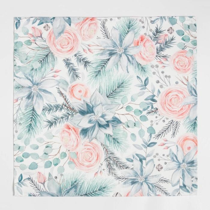 Набор новогодних салфеток Этель «Christmas flowers» 46×46 см — 4шт., 100%хл, саржа 190 г/м2