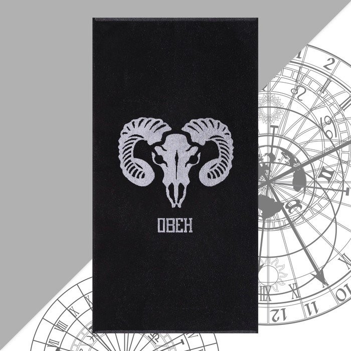 Полотенце махровое Этель «Знаки зодиака: Овен» чёрный, 67×130 см, 420 гр/м2, 100% хлопок