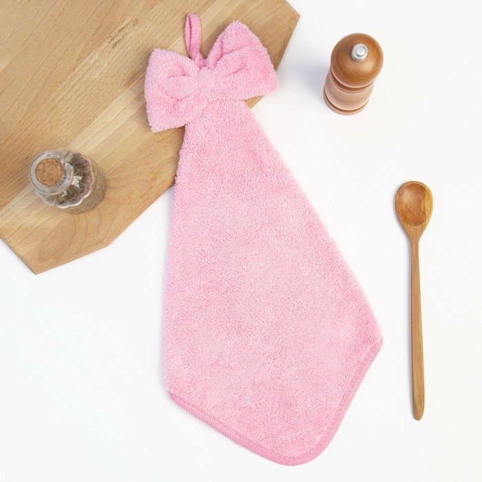 Кухонное полотенце Доляна «Бантик"цв.розовый 28×40 см, микрофибра, 100% п/э