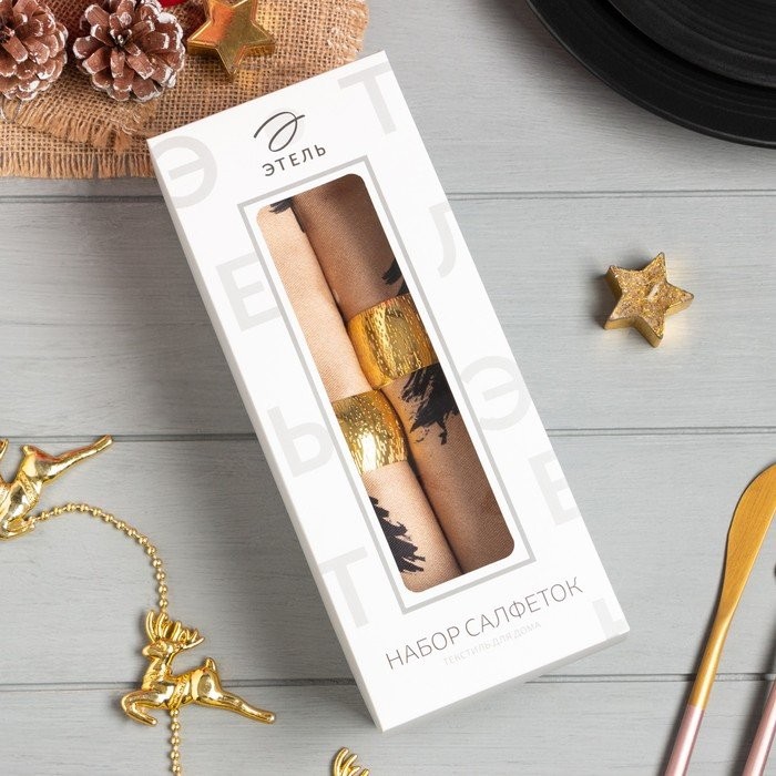 Набор салфеток с декорат. кольцами «LOVE XMAS» 45×45 см — 2 шт, 100% хл, саржа 190гр/м2