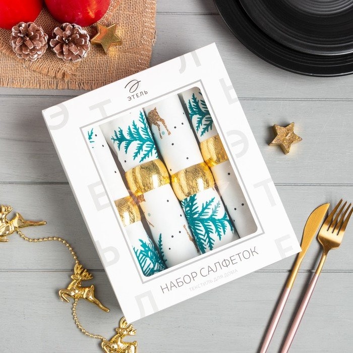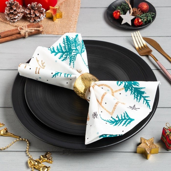 Набор салфеток с декорат. кольцами «Magic Winter» 45х45см — 4 шт, 100% хл, саржа 190гр/м2