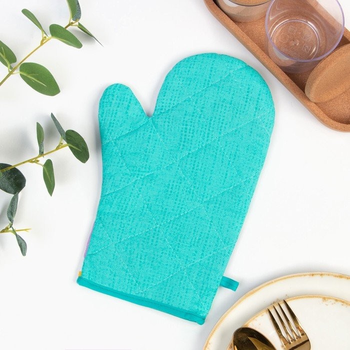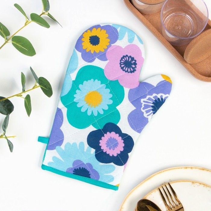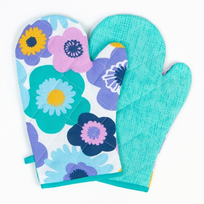 Набор прихваток-рукавичек Мари Санна Цветы+бирюза 7934−1+7900−2, рогожка, 2 шт