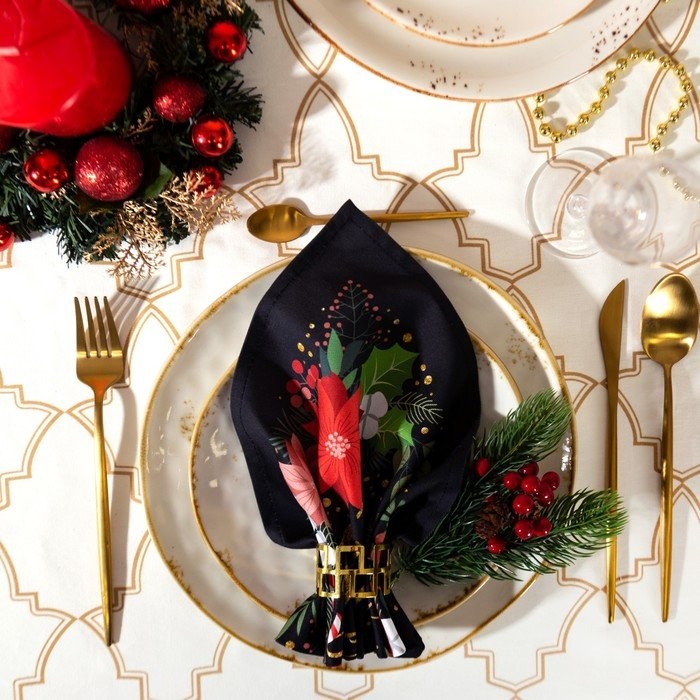 Салфетка декоративная «Happy new year» 40×40 см, 100% хл, саржа 190 гр/м2