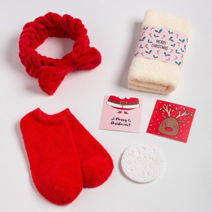 В подарочный набор входит: Носки, 36−39 размер. Полотенце, 30×60 см. Повязка на голову, 36 — 65 см. Открытки, 3 шт.