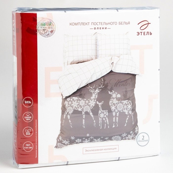 Постельное бельё «Этель» 2 сп Олени 175*215 см, 200*220 см, 70*70 см — 2 шт, бязь 125гр/м2