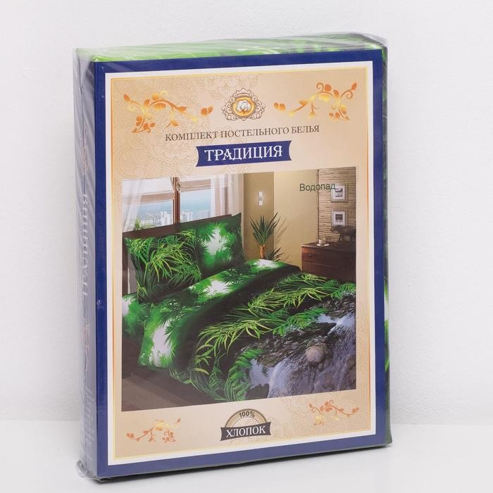 Постельное бельё «Традиция: Водопад», евро, 200×217 см., 220×240 см., 70×70 см. — 2 шт., бязь 125 г/м, хлопок 100%