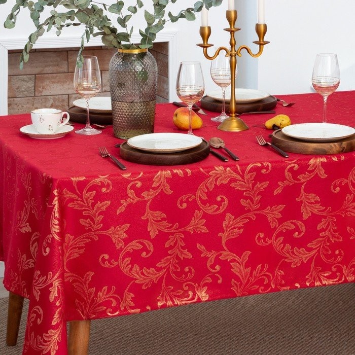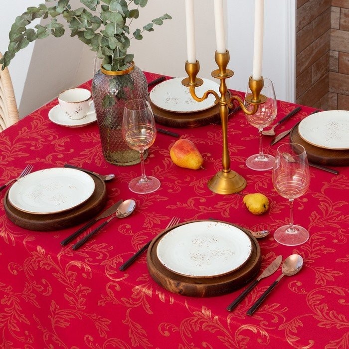 Скатерть Этель «Patterns» цвет красный, 142*283 +/-3 см, 115 ±10 гр,100% п/э