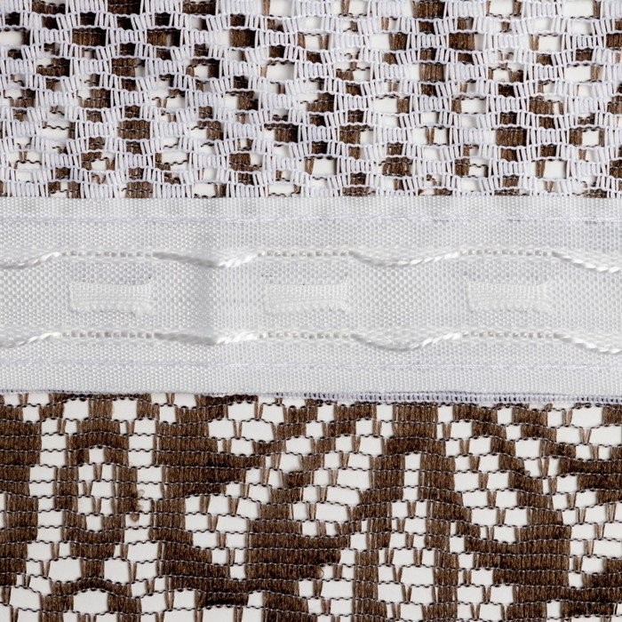 Тюль кухонная со шторной лентой, 145×275 см, цвет белый с коричневым, пэ