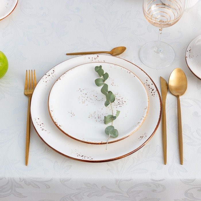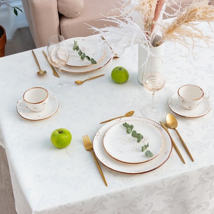 Скатерть Этель «White patterns» цвет белый, 142*220 +/-3 см, 115 ±10 гр,100% п/э