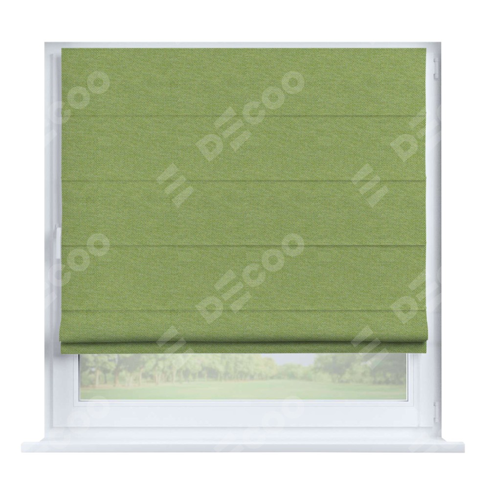 Римская штора производителя «Cortin», устанавливается на створку окна, пошита из ткани лён димаут салатовый, артикул 83032. Штора шьётся по индивидуальным размерам, для данного типа римской шторы возможная ширина от 35 до 150 см., высота до 250 см.