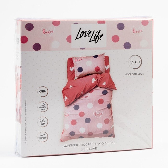 Постельное бельё 1.5 сп «LoveLife» Just love, 143×215 см,150×214 см,50×70 см-1 шт. сатин
