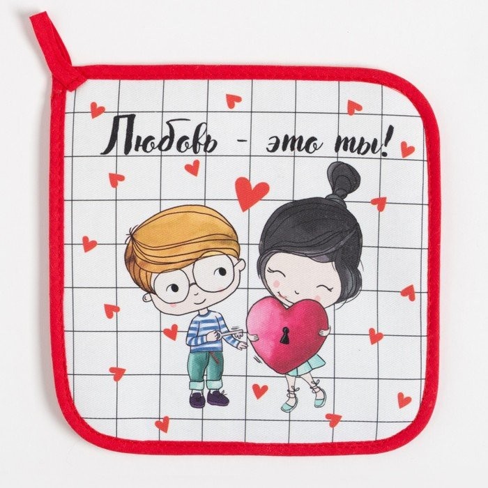 Набор Кухонный «Любовь — это ты», варежка-прихватка 20х28см, прихватка 19х19см, 100% хл