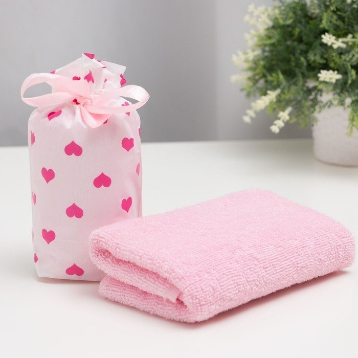 Полотенце в мешочке Экономь и Я «Сердечки» 30*60 см, 100% хлопок, 320 гр/м2