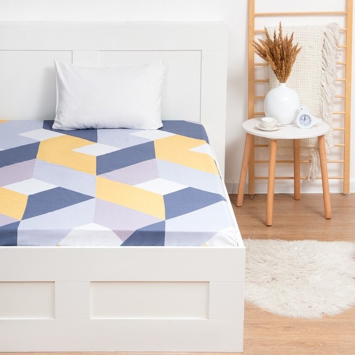 Простыня на резинке LoveLife 180*200*25см, «Треугольники», 100% хлопок, сатин, 125г/м²