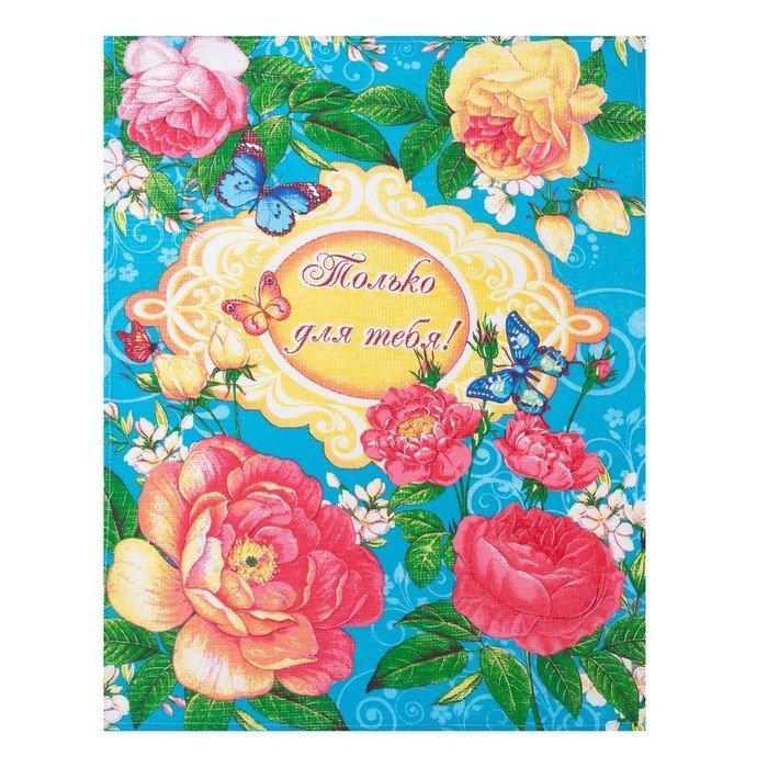 Полотенце 45×60 см, Английская роза, бирюза, вафля, 160 гр/м2, хлопок 100%