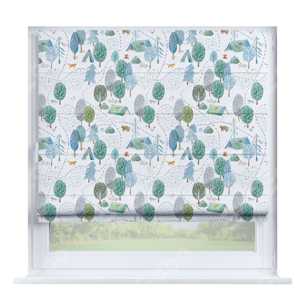 Римская штора производителя «Cortin», устанавливается на створку окна, пошита из ткани блэкаут с нанесением сублимационной печати «Лесистая местность». Штора шьётся по индивидуальным размерам, для данного типа римской шторы возможная ширина от 35 до 150 см., высота до 250 см.