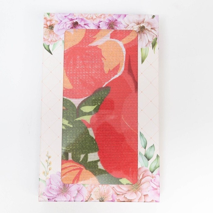 Полотенце в коробке 35×60 см, Букет розы-маки, вафля, 160 гр/м2, хлопок 100%
