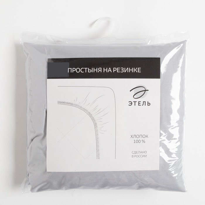 Простыня на резинке «Этель» 180х200×25 см, серый, 100% хлопок, перкаль