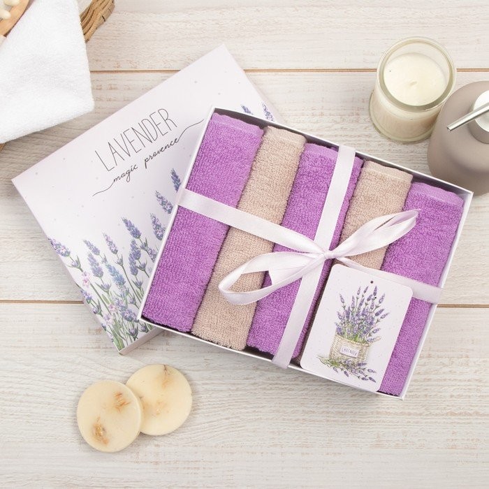 Набор махровых полотенец Этель Lavender 30×30 см -5шт, 100% хлопок 340 гр/м2