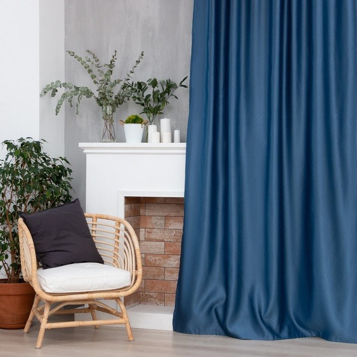 Штора портьерная Этель «Штрихи» цв.синий,на люверсах 130*300 см, 100% п/э