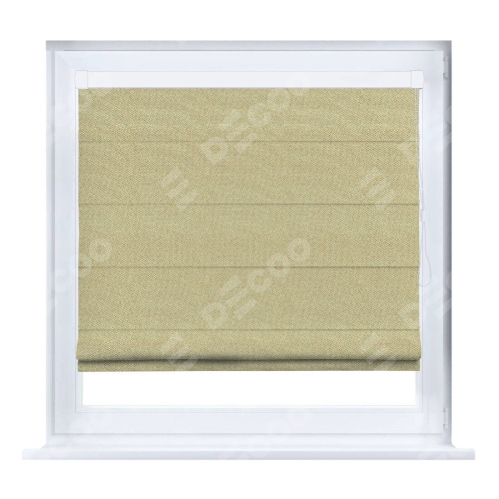 Римская штора производителя «Cortin», устанавливается на створку окна, пошита из ткани лён димаут песочный, артикул 16239. Штора шьётся по индивидуальным размерам, для данного типа римской шторы возможная ширина от 35 до 150 см., высота до 250 см.