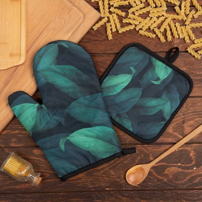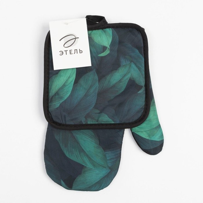 Кухонный набор (2 предмета) Этель «Листья», прихватка 17×17 см, варежка 26×16 см, 100% п/э