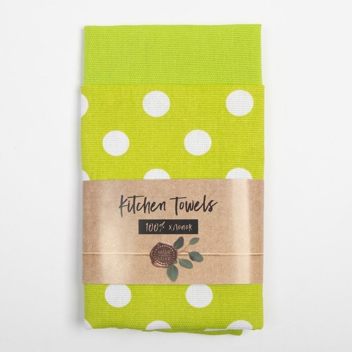Набор кухонных полотенец Доляна «Зелёное яблоко» 35×60 см — 2 шт, 100% хл, рогожка 165 г/м2