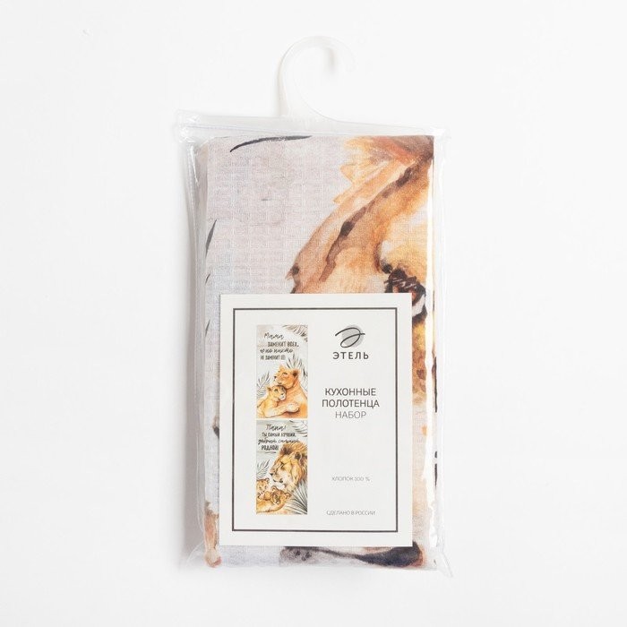 Набор кухонных полотенец Этель «Семейство кошачьих» 40х73см — 2 шт, 100% хл, вафля 160 г/м2