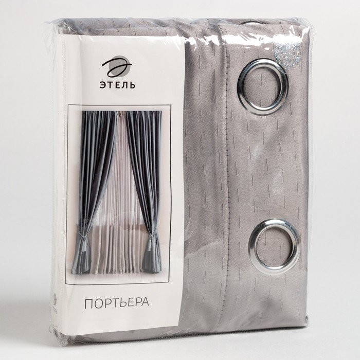 Штора портьерная Этель «Штрихи» цв.цв.серый,на люверсах 130*300 см, 100% п/э