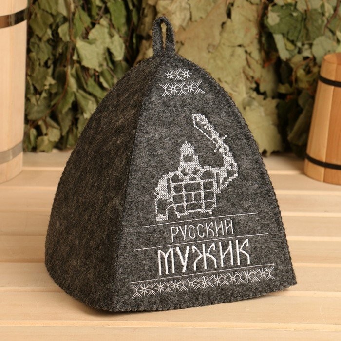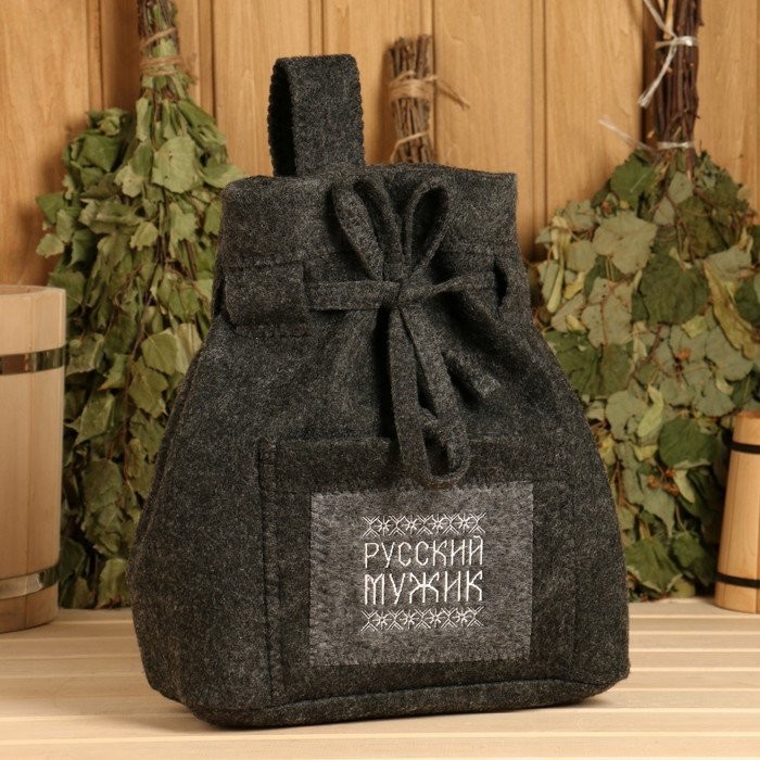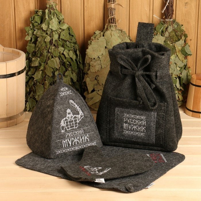 Набор для бани 4 предмета «Русский мужик» шапка, коврик, рукавица, портфель