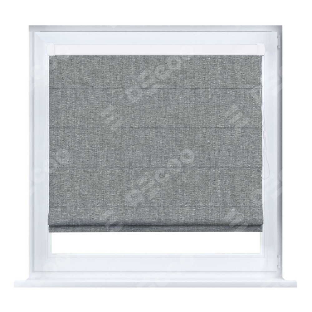 Римская штора кассетного типа, производителя «Cortin», устанавливается только на пластиковые окна и прилегает к стеклопакету, пошита из ткани рогожка димаут тёмно-серый, артикул 80418.