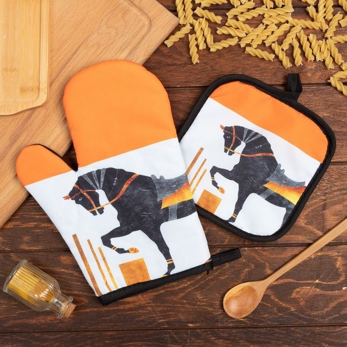 Кухонный набор (2 предмета) Этель «Конь», прихватка 17×17 см, варежка 26×16 см, 100% п/э